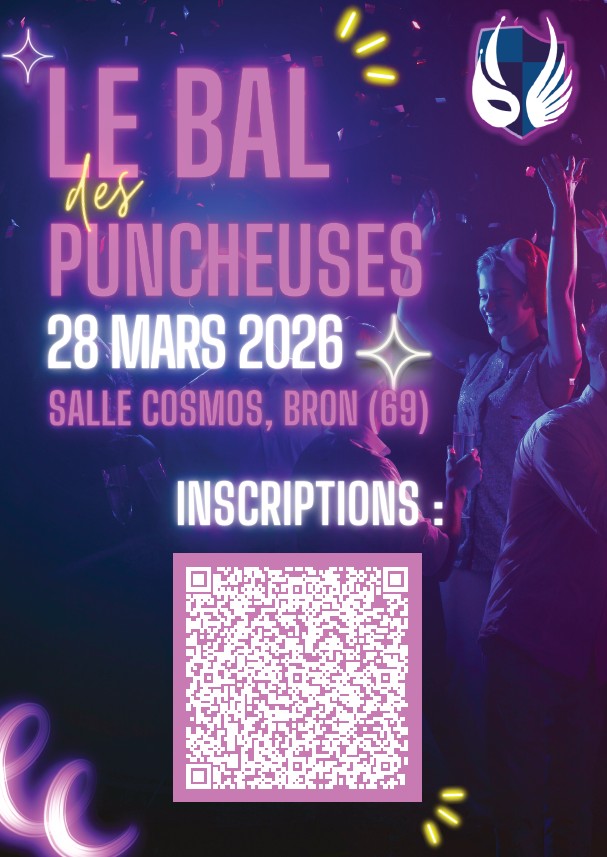 Le bal des Puncheuses Publié le 17 mars 2026 par Olivier Ugarte Les féminines ont le plaisir de vous inviter à leur bal, qui se déroulera à la Salle Cosmos, près du stade de Bron. Date : samedi 28 mars 2026Lieu : Salle Cosmos – Bron Les inscriptions se font en scannant le QR code présent sur l’affiche.Elles vous attendent nombreux pour partager ensemble une très belle soirée qui s’annonce conviviale et festive.